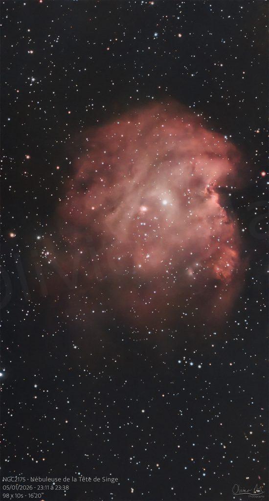 Astrophotographie, Ciel Profond, Nébuleuse, Seestar S50#3 – NGC 2175 – Nébuleuse de la Tête de Singe 5 janvier 2026 Seestar S50 EQ Mode 98 x 10s – 16’20 »