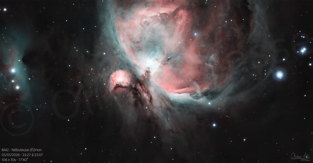 Astrophotographie, Ciel Profond, Nébuleuse, Seestar S50#2 – M42 – Nébuleuse d’Orion 5 janvier 2026 Seestar S50 EQ Mode 160 x 10s – 17’40 »