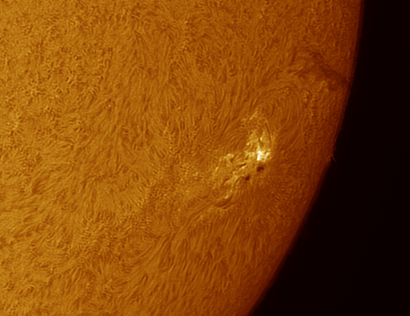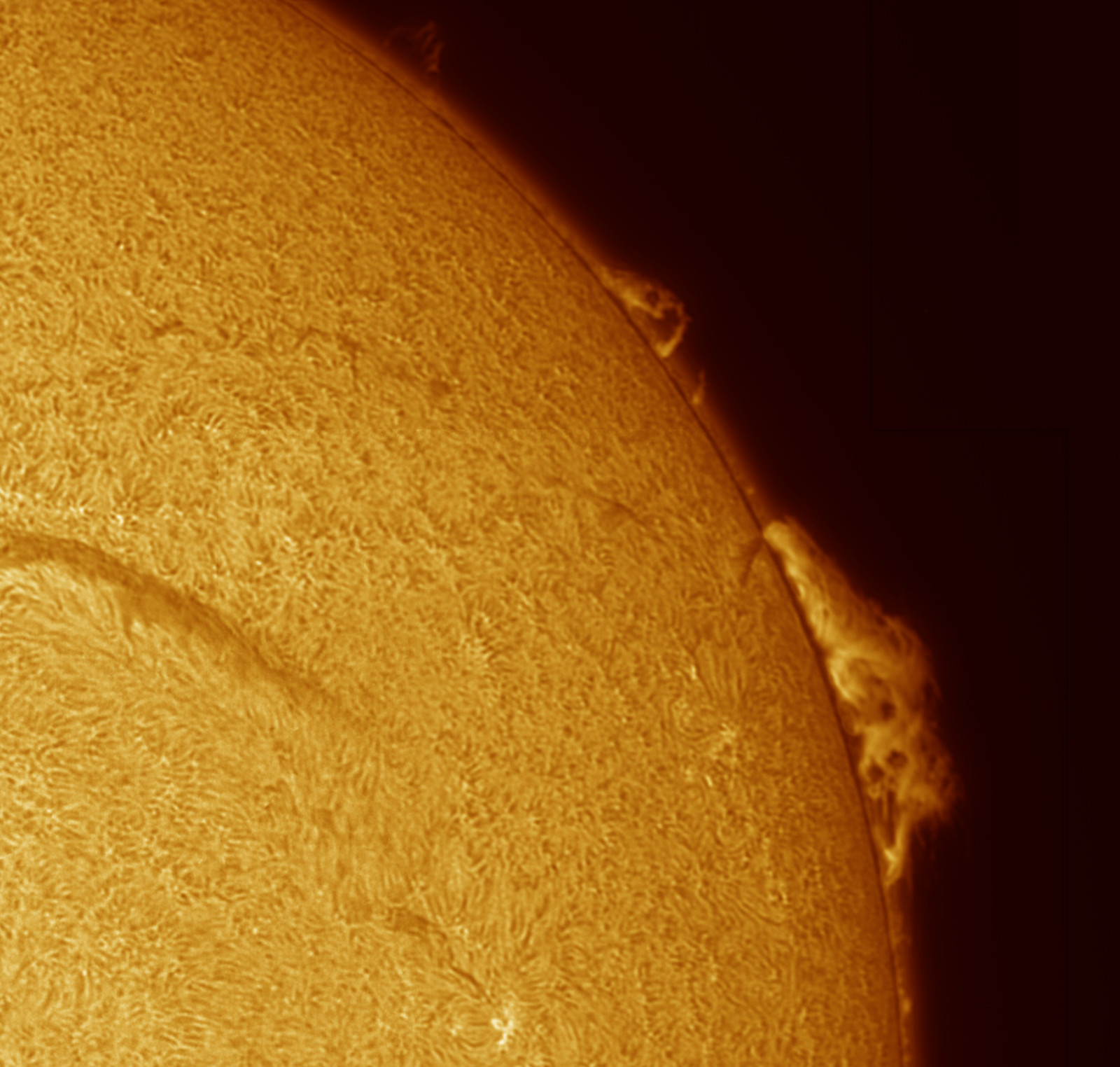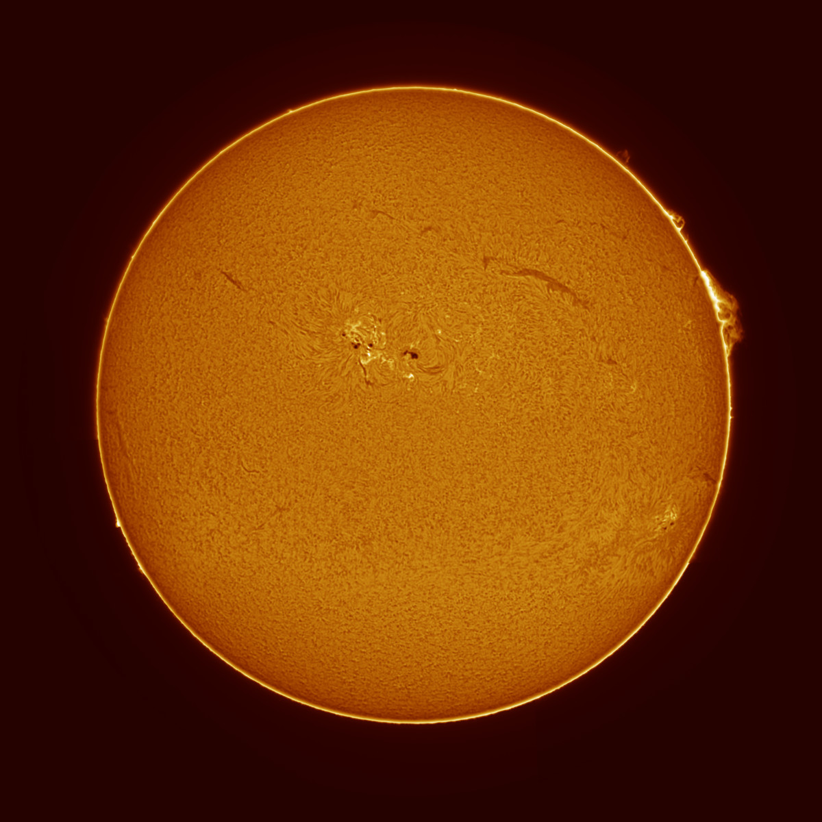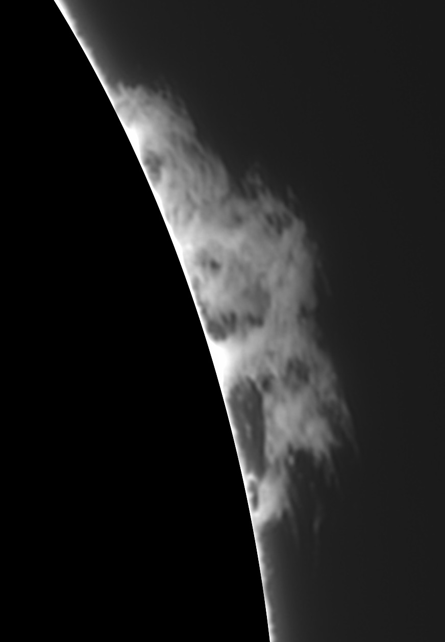 Soleil H-alpha du 21/06/2015Par Olivier / 21 juin 2015 Date : 20/06/2015 Setup : Lunt 60mm BF1200 Single Stack + Plb-Mx2 sur EQG Sirius Traitement : Registax + Gimp